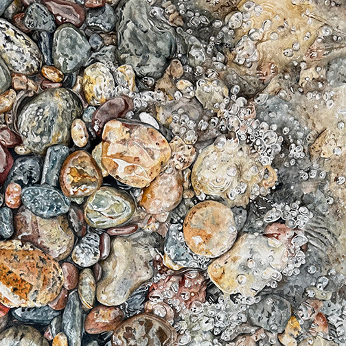 The inspiration for this painting came from a photo I took on a snowy day while on a walk with my husband at a park near our home. The snow was so heavy that the weeds were weighed down and bent over under the weight of the snow, making a beautiful scene for this painting.